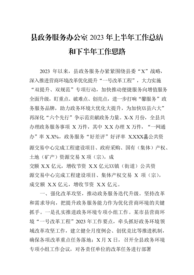 / 县政务服务办公室2023年上半年工作总结和下半年工作思路(20230620)