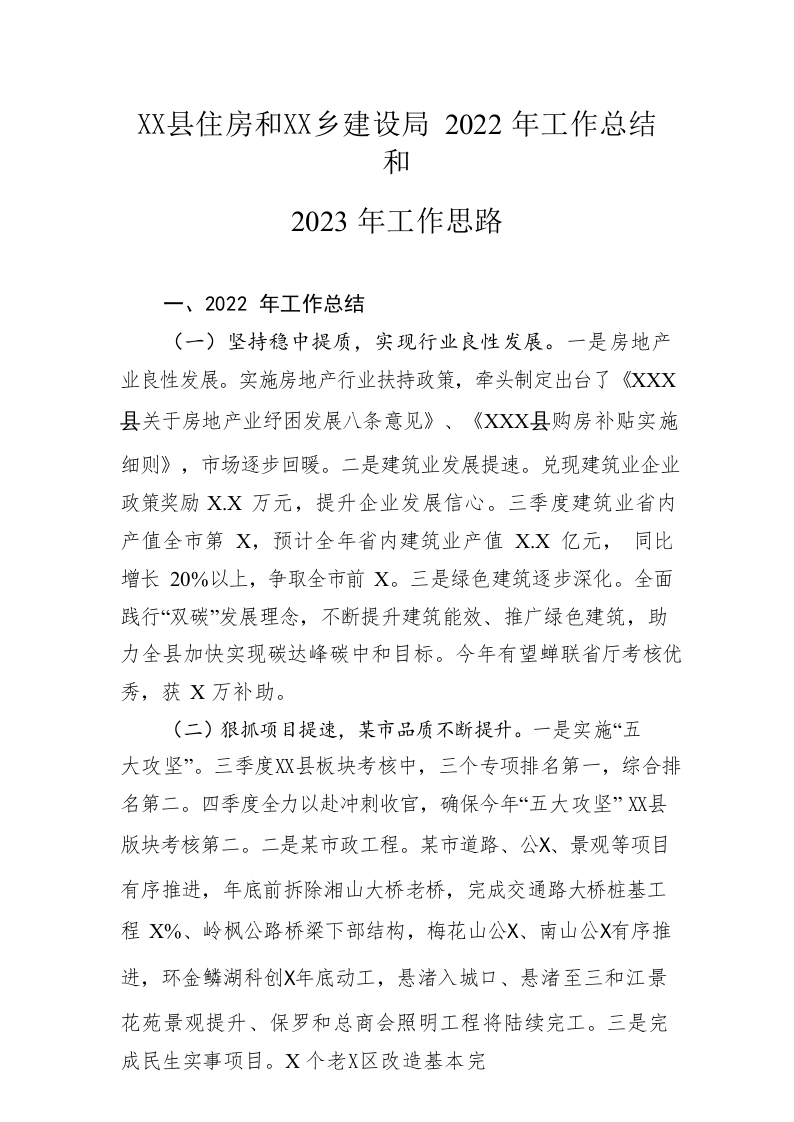 / 县住房和城乡建设局2022年工作总结和2023年工作思路