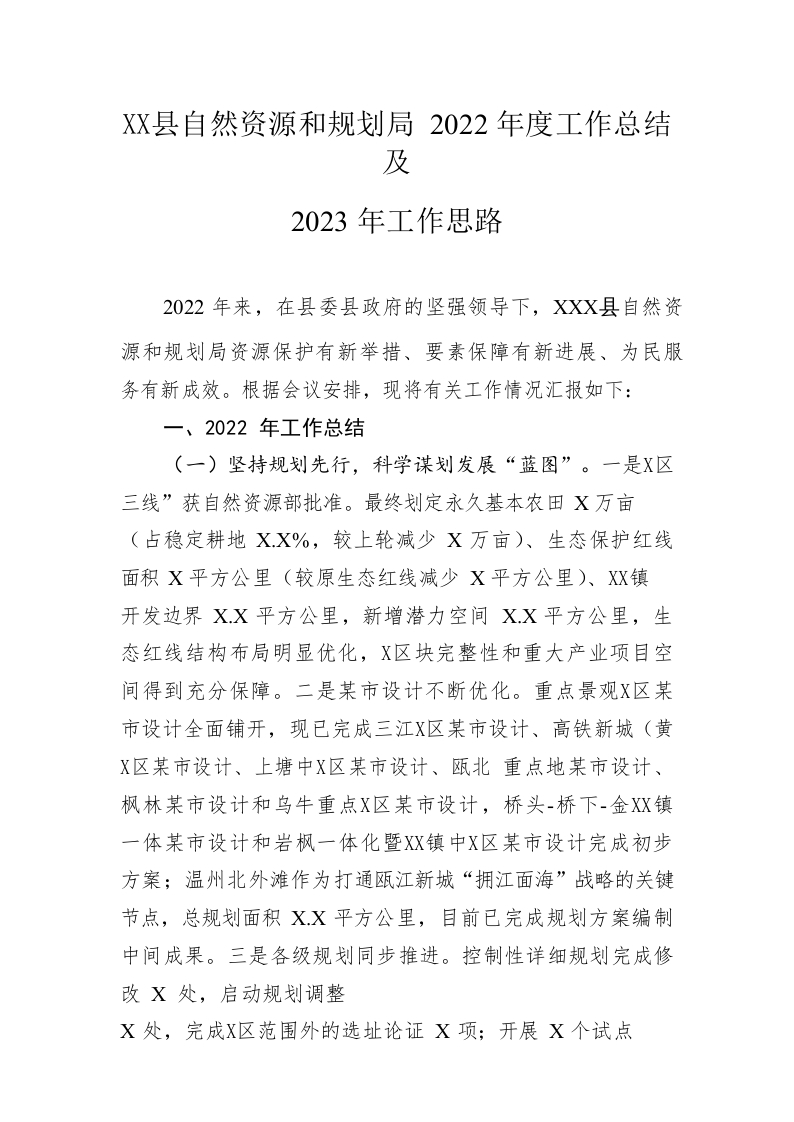 / 县自然资源和规划局2022年度工作总结及2023年工作思路