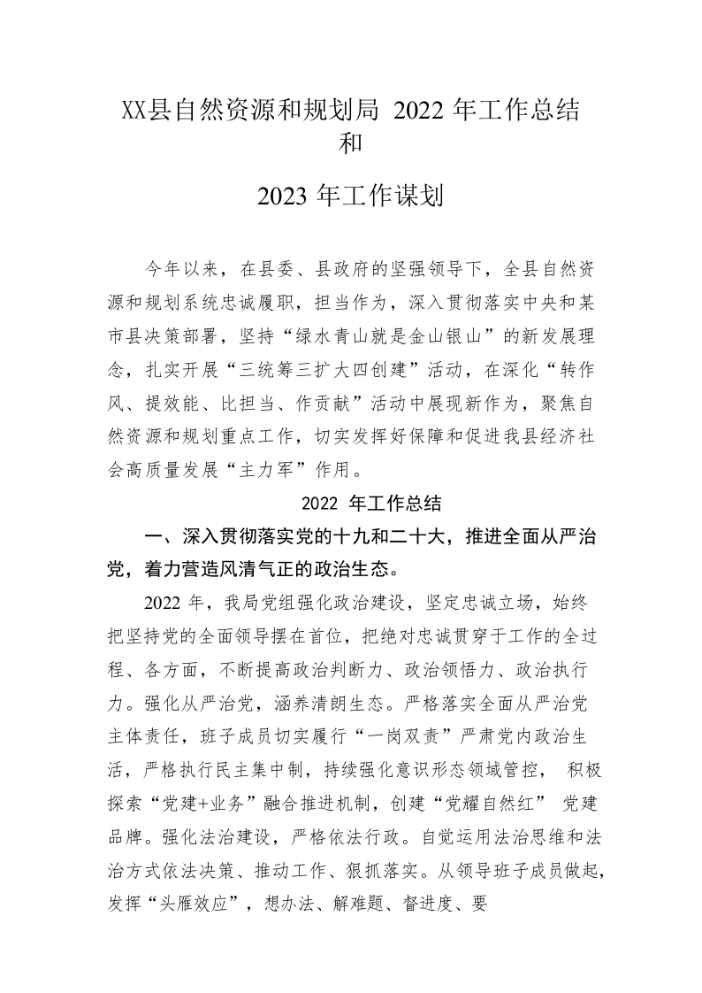 / 县自然资源和规划局2022年工作总结和2023年工作谋划