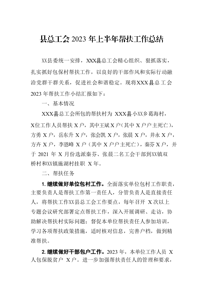 / 县总工会2023年上半年帮扶工作总结(20230615)