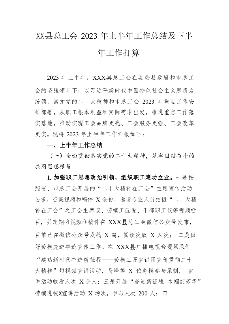 / 县总工会2023年上半年工作总结及下半年工作打算(20230627)