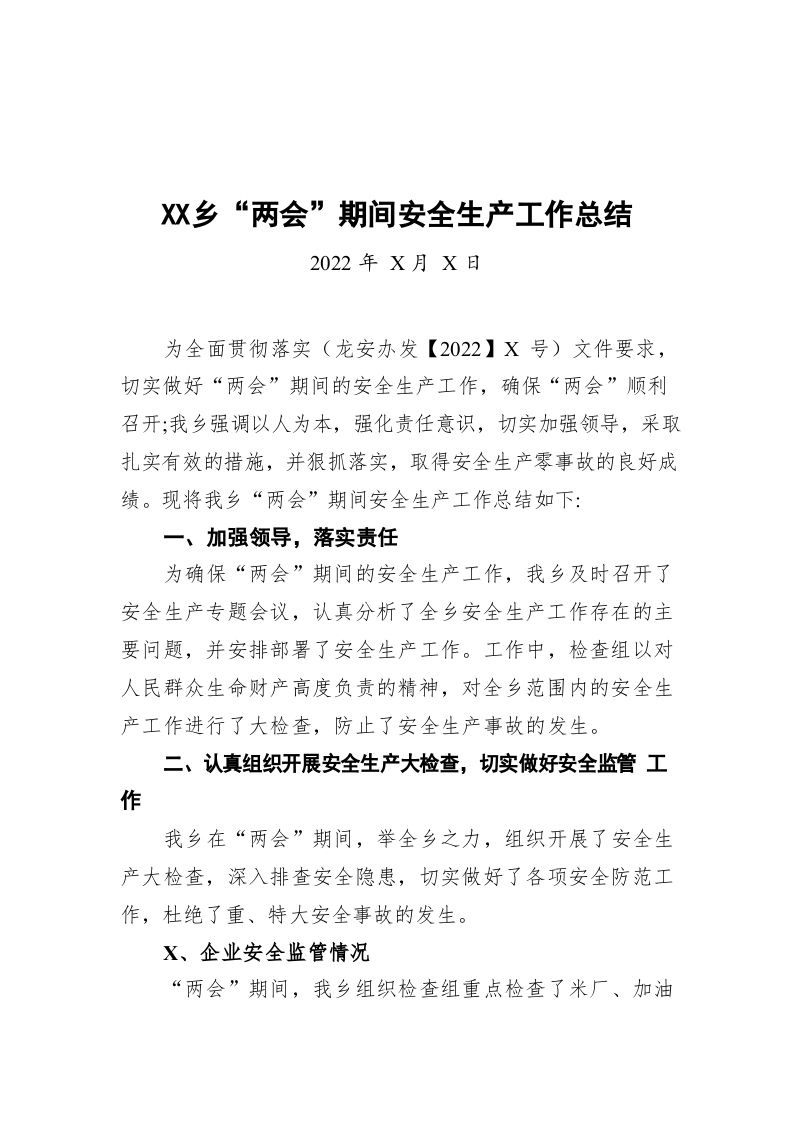 / 乡“两会”期间安全生产工作总结(20220331)