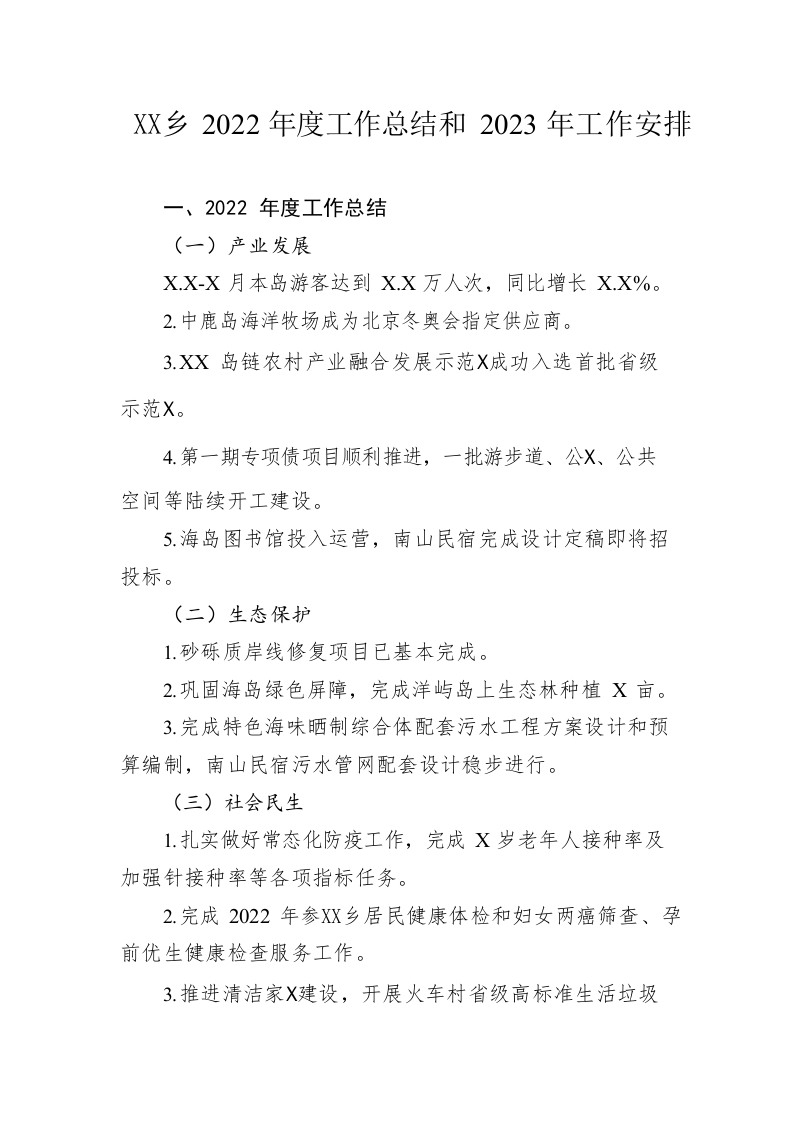 / 乡2022年度工作总结和2023年工作安排