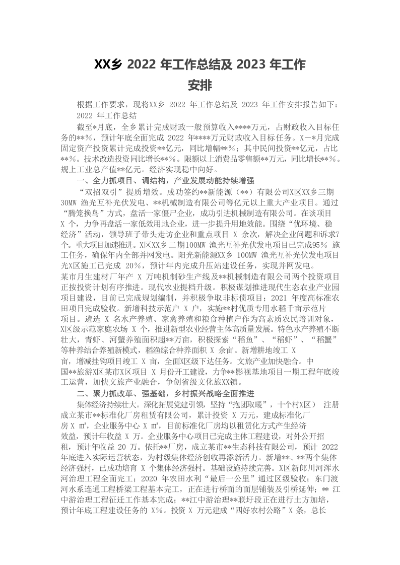 / 乡2022年工作总结及2023年工作安排