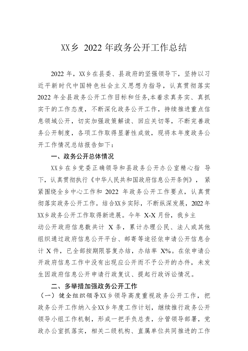 乡2022年政务公开工作总结(20221219)