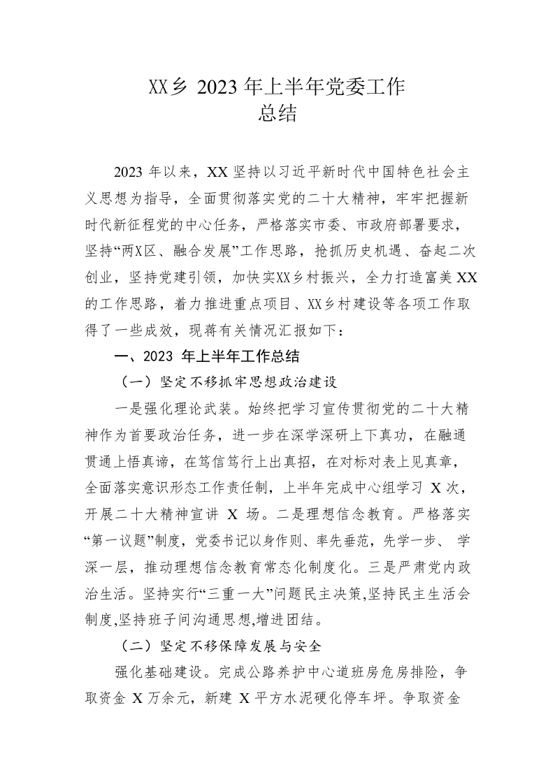 乡2023年上半年工作总结和2023年下半年工作思路(20230710)