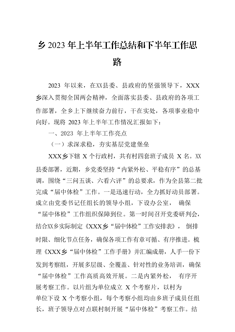 乡2023年上半年工作总结和下半年工作思路(20230704)