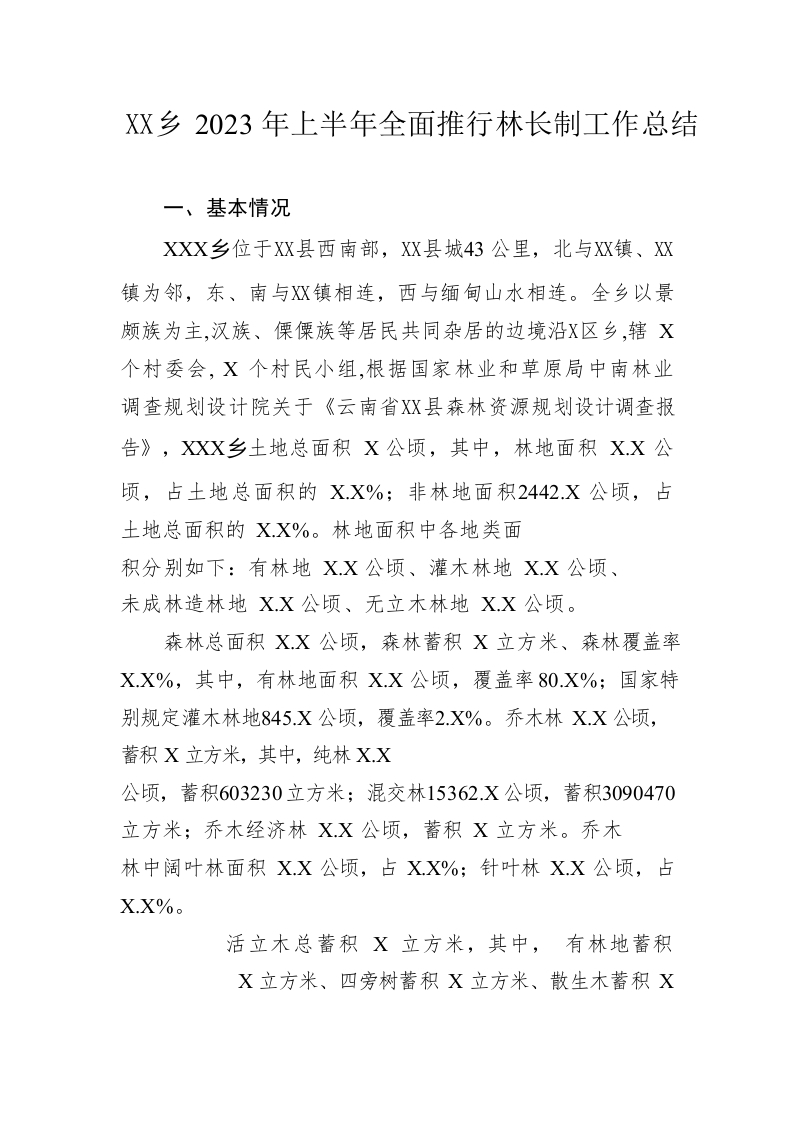 / 乡2023年上半年全面推行林长制工作总结(20230609)
