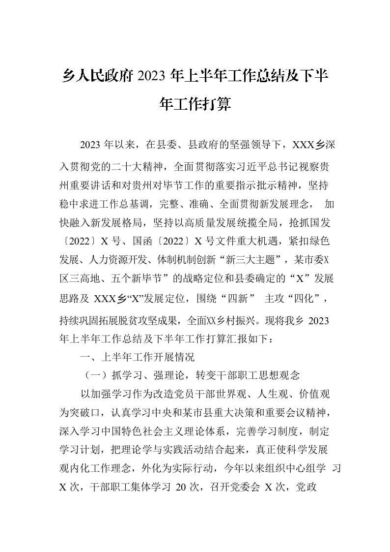 / 乡人民政府2023年上半年工作总结及下半年工作打算