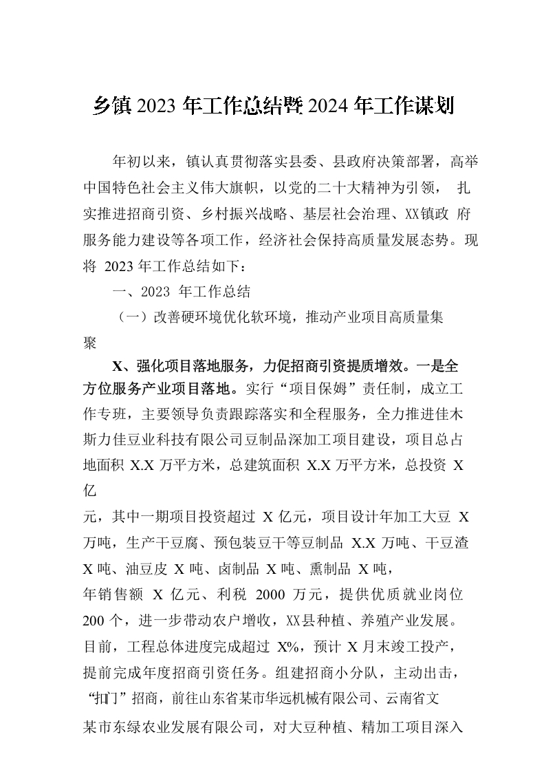 / 乡镇2023年工作总结暨2024年工作谋划