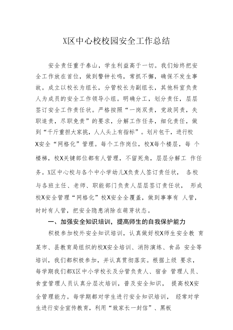 / 学区中心校校园安全工作总结