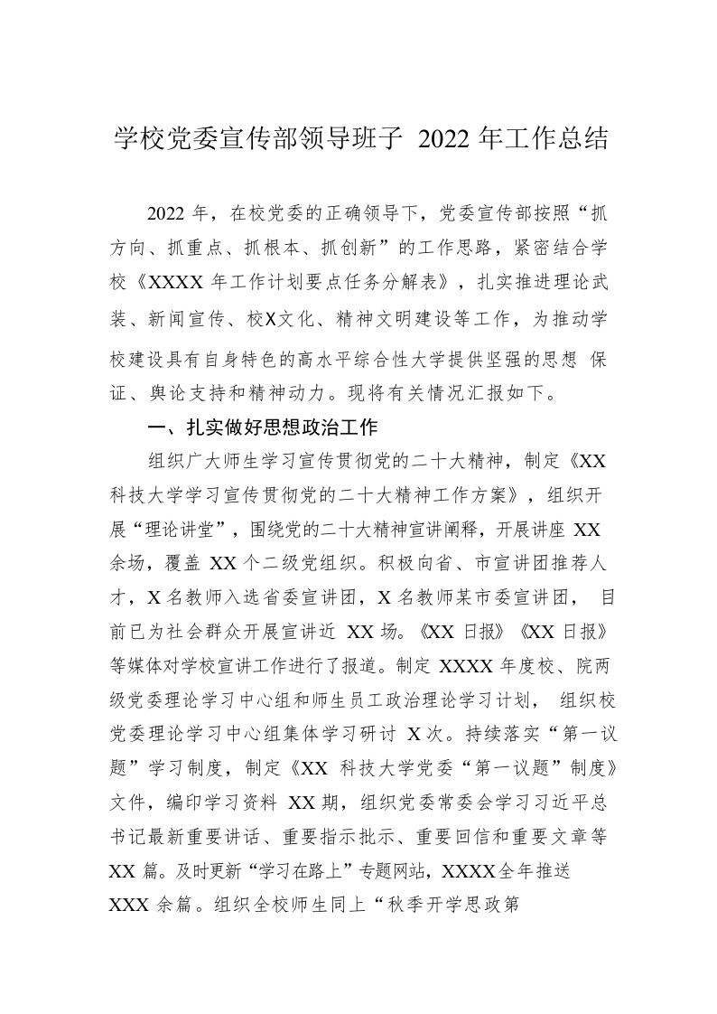 / 学校党委宣传部领导班子2022年工作总结