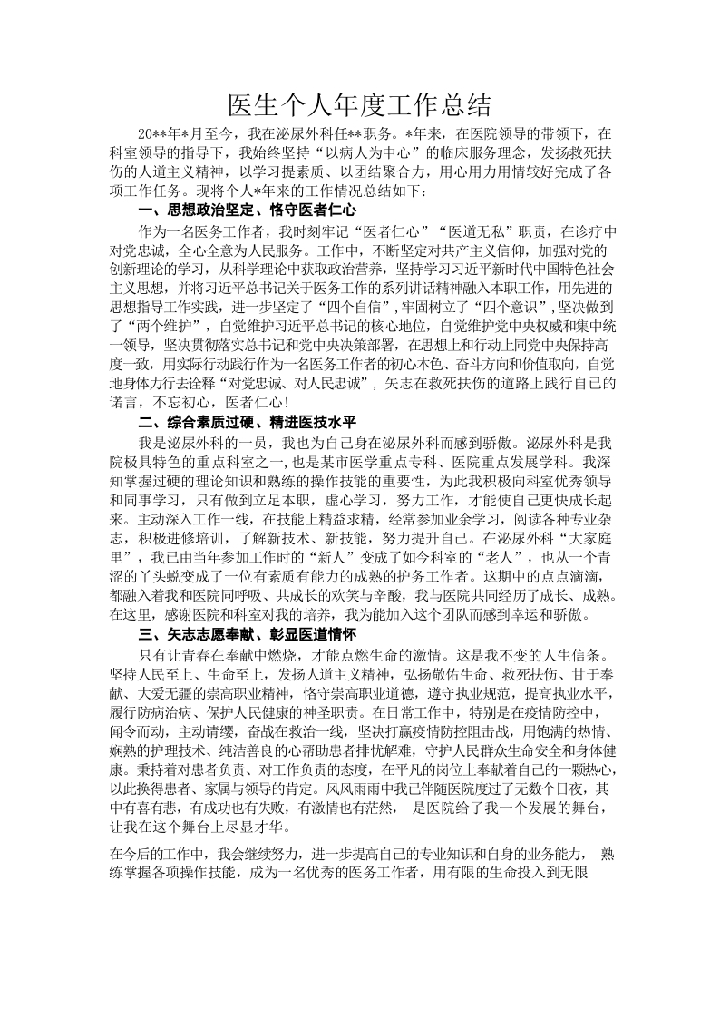 医生个人年度工作总结