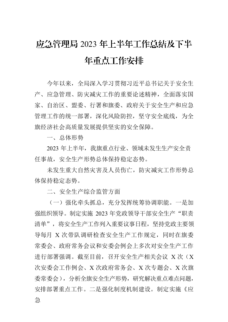 / 应急管理局2023年上半年工作总结及下半年重点工作安排