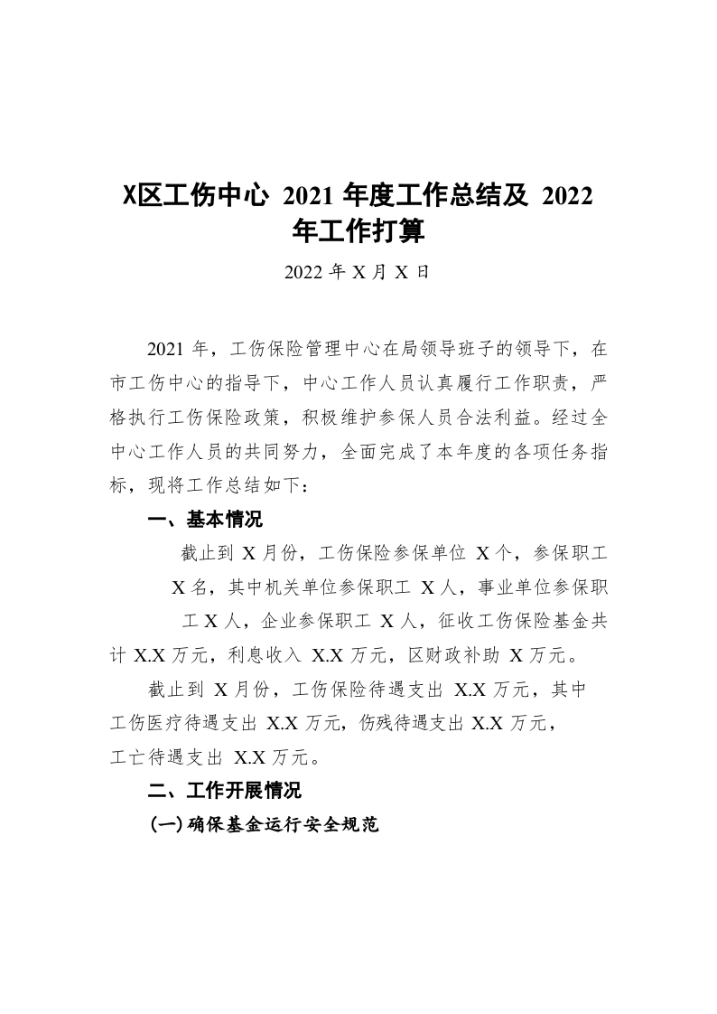 / 某区工伤中心2021年度工作总结及2022年工作打算(20220127)