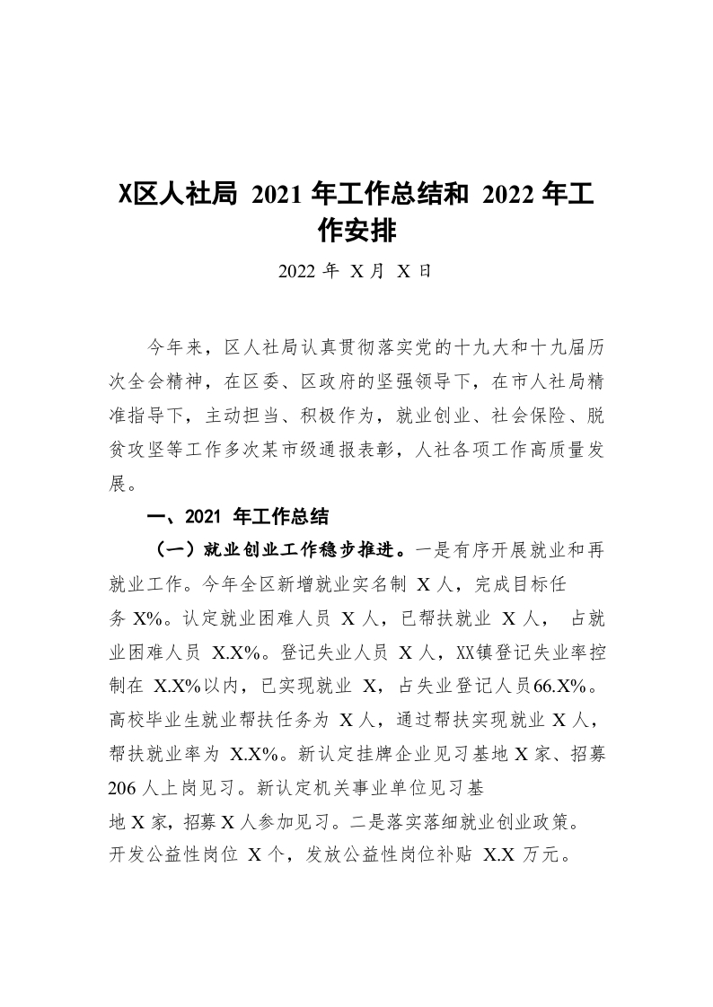 / 某区人社局2021年工作总结和2022年工作安排(20220214)