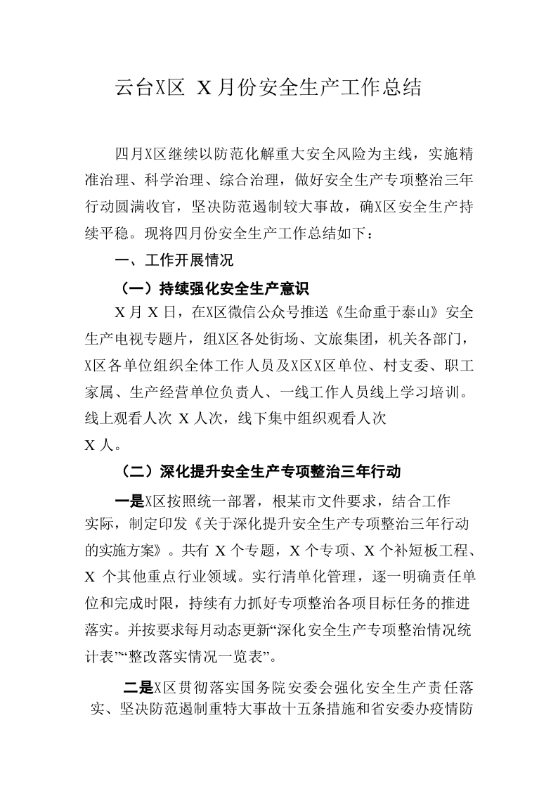 云台山景区4月份安全生产工作总结