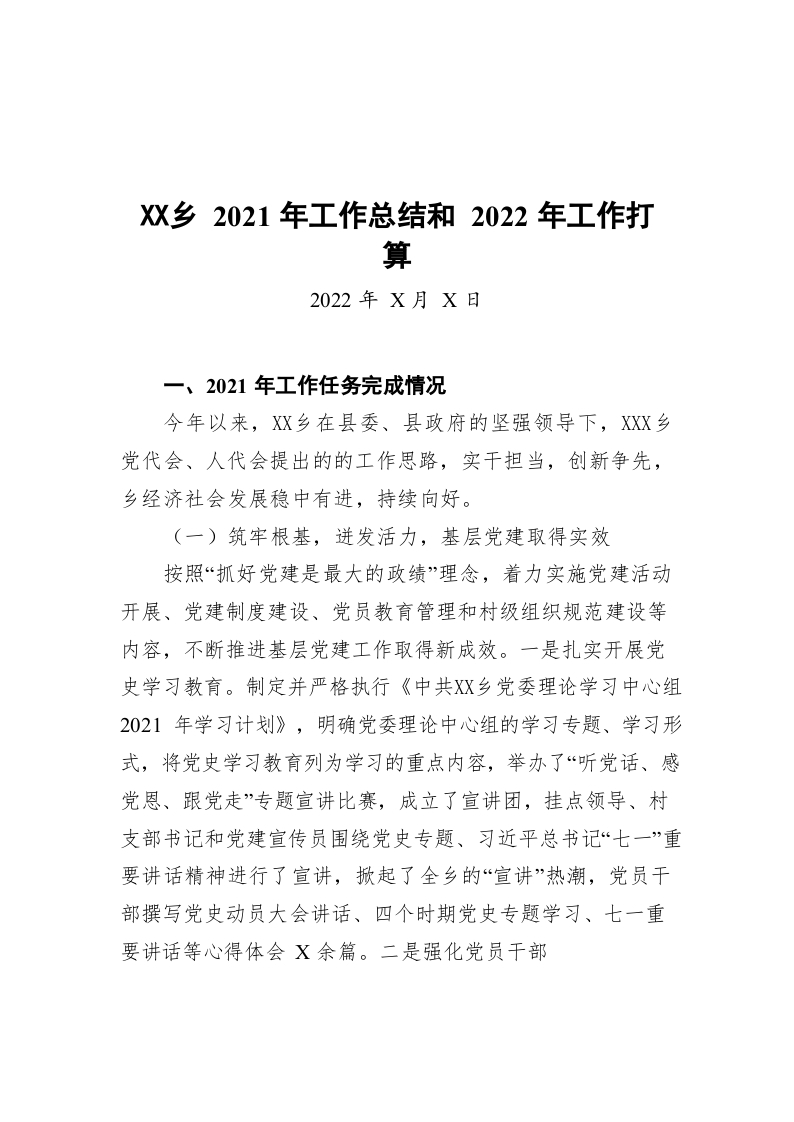 / 澡溪乡2021年工作总结和2022年工作打算
