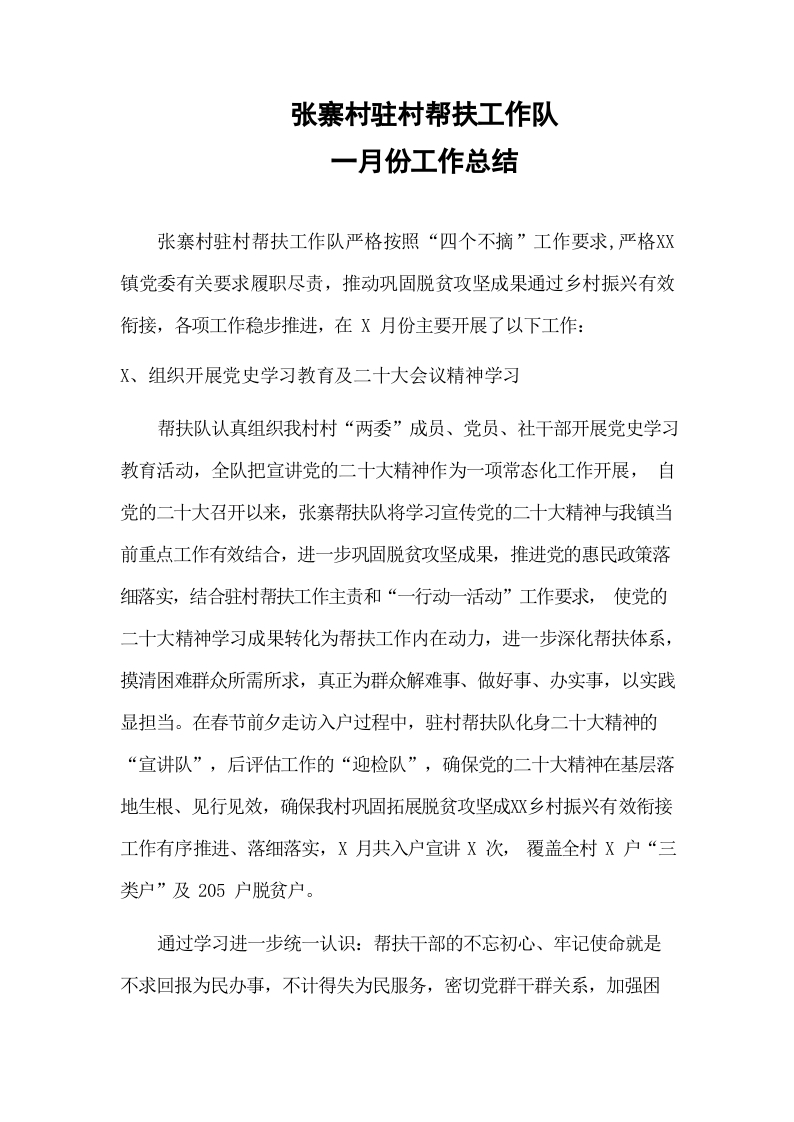 / 张寨帮扶队1月份工作总结