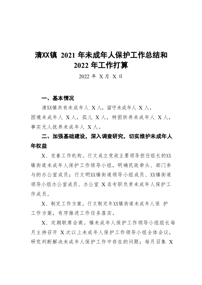 / 镇2021年未成年人保护工作总结和2022年工作打算(20220218)