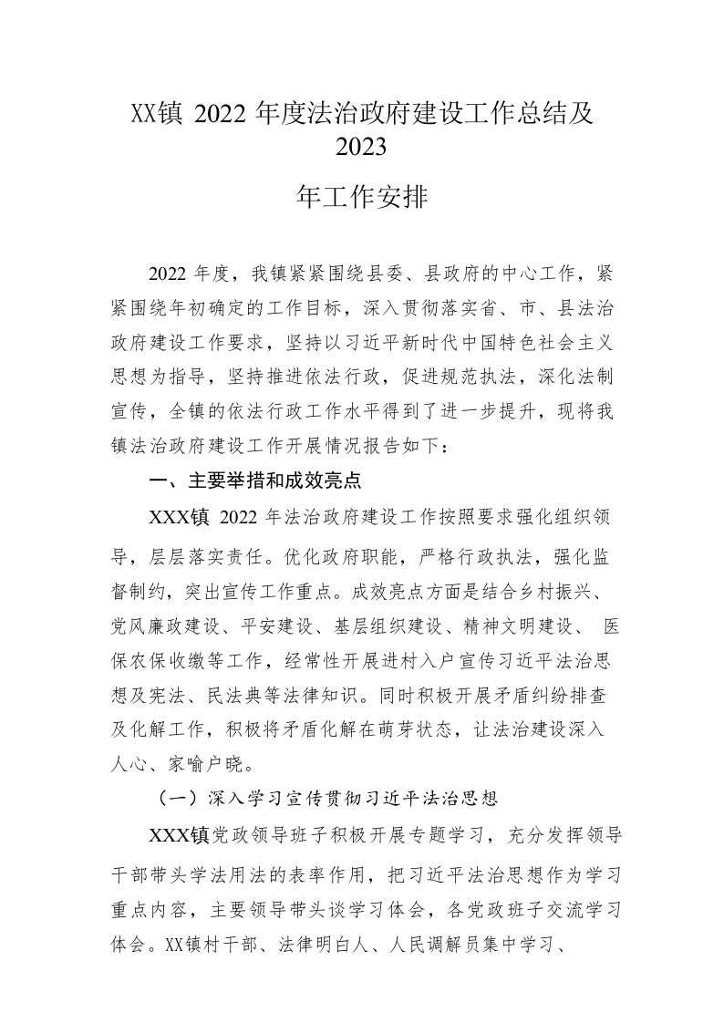 / 镇2022年度法治政府建设工作总结及2023年工作安排