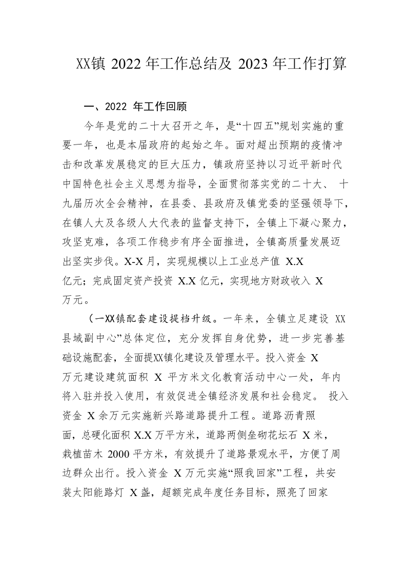 / 镇2022年工作总结及2023年工作打算