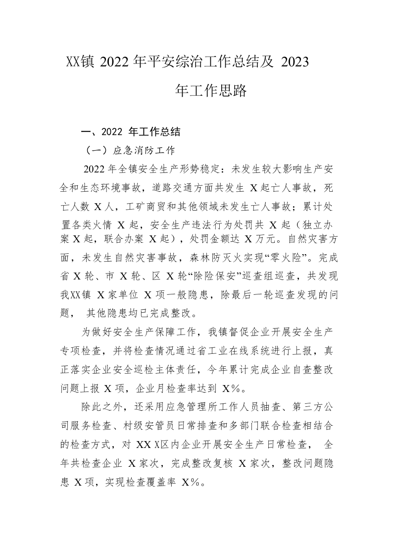 / 镇2022年平安综治工作总结及2023年工作思路