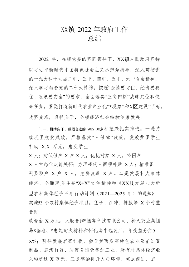 / 镇2022年政府工作总结