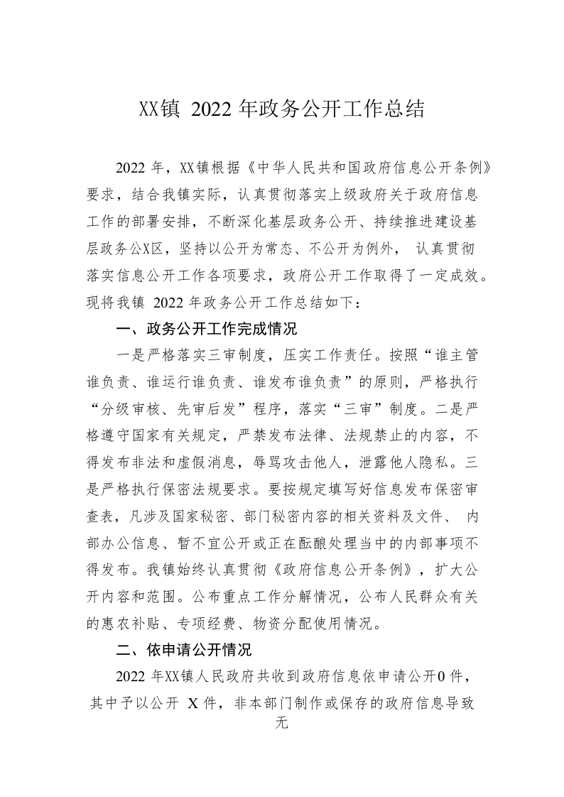 镇2022年政务公开工作总结(20221218)