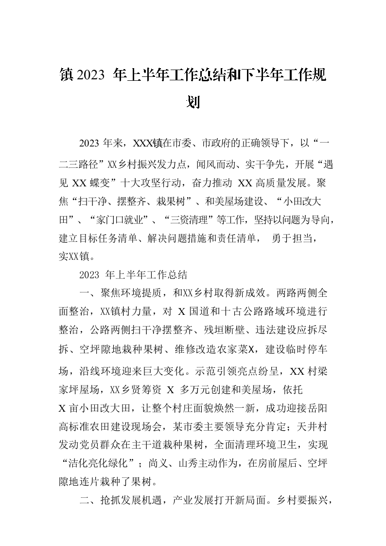 镇2023 年上半年工作总结和下半年工作规划(20230710)
