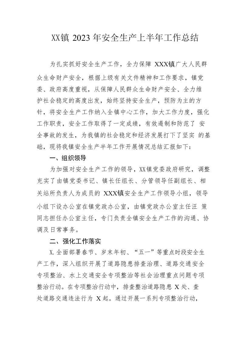 / 镇2023年安全生产上半年工作总结(20230527)