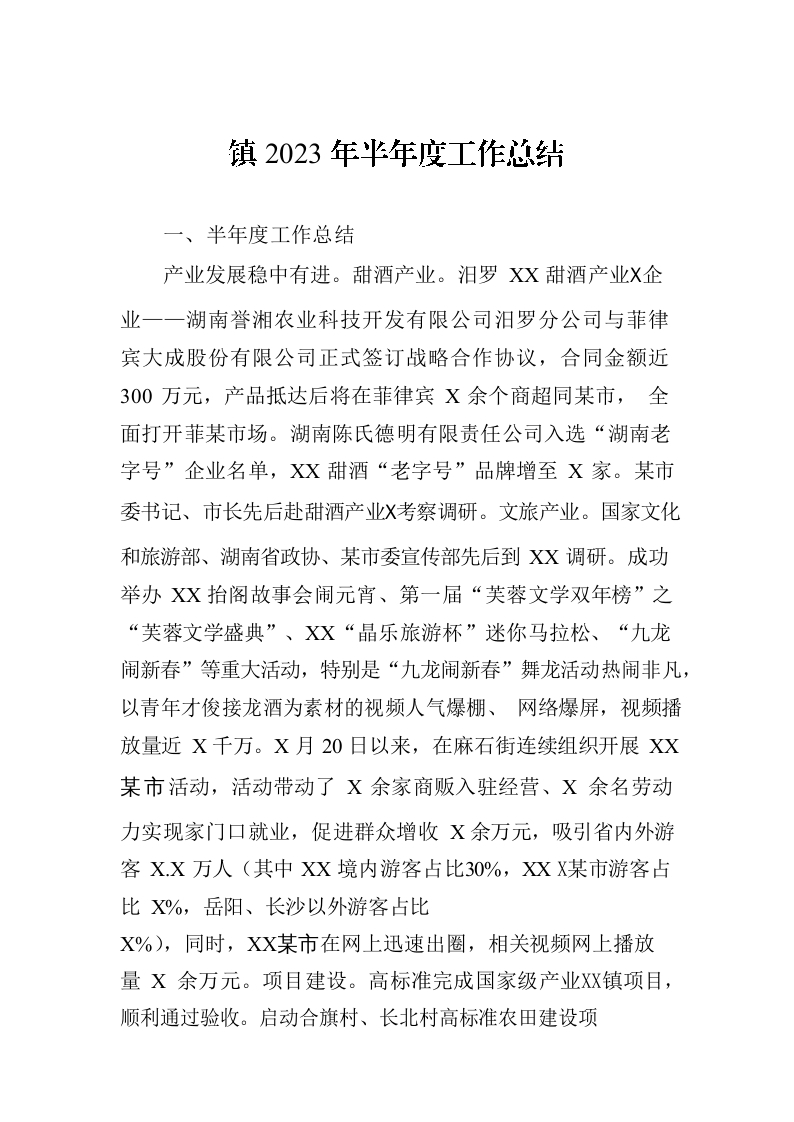 / 镇2023年半年度工作总结