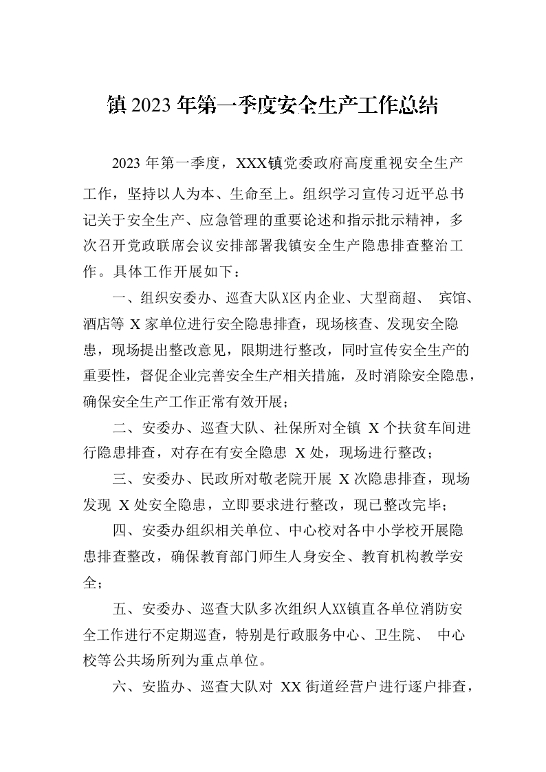 镇2023年第一季度安全生产工作总结 (20230401)