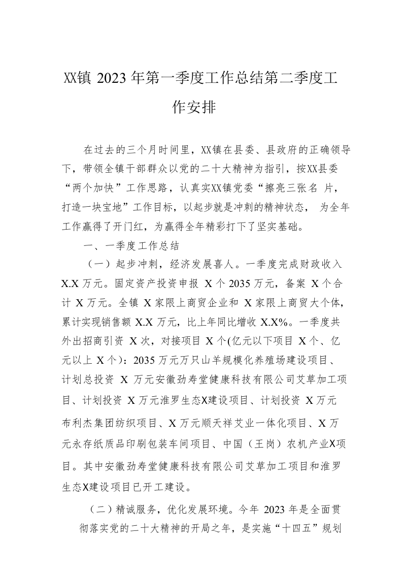 镇2023年第一季度工作总结第二季度工作安排(20230425)