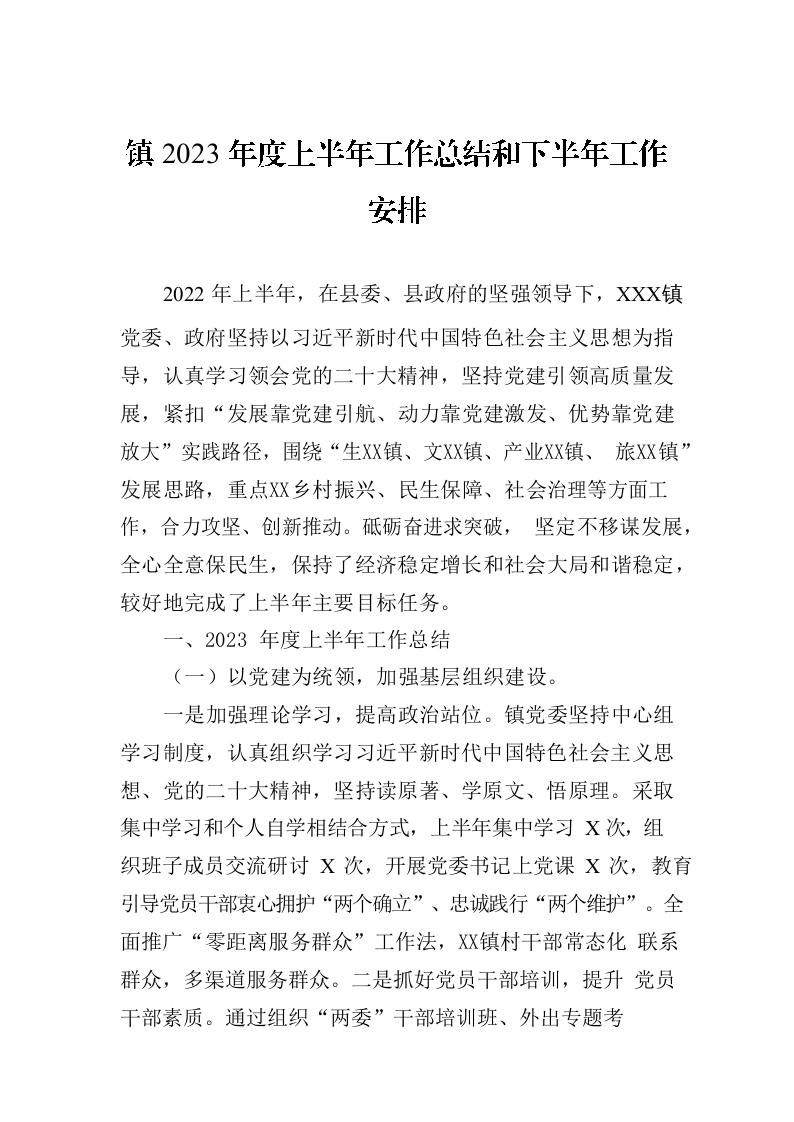 镇2023年度上半年工作总结和下半年工作安排(20230703)