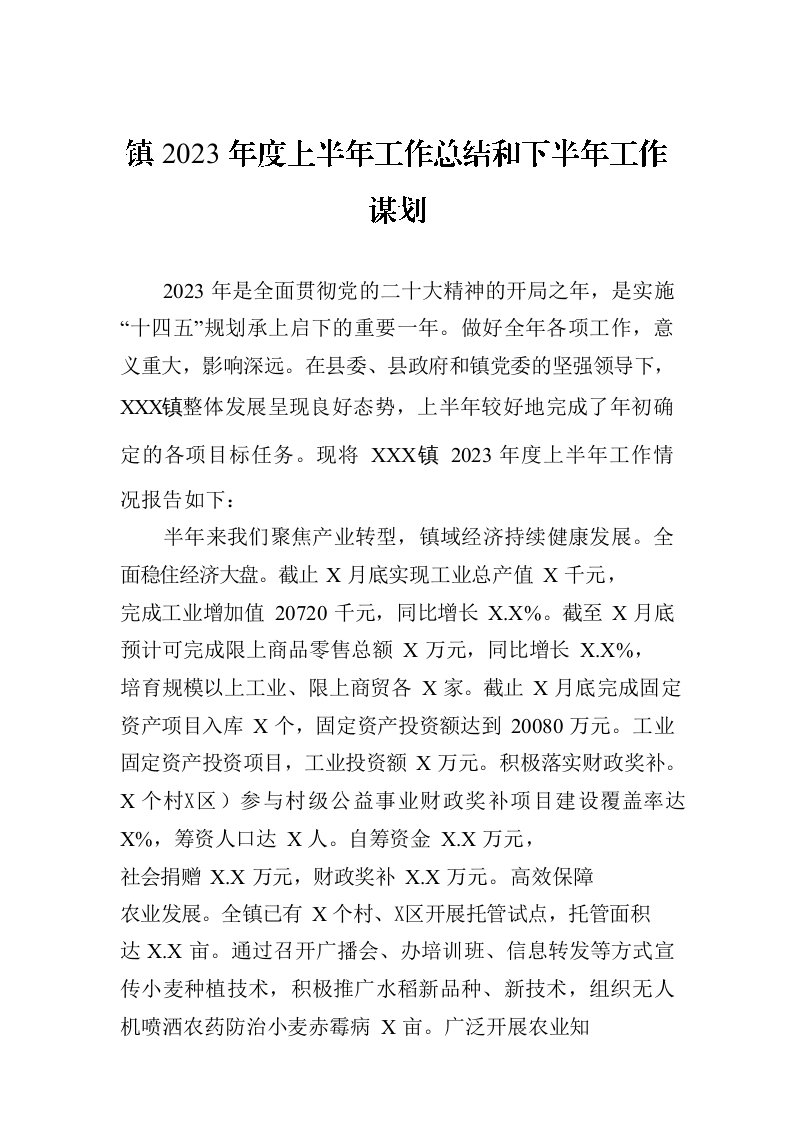 镇2023年度上半年工作总结暨下半年工作安排(20230828)