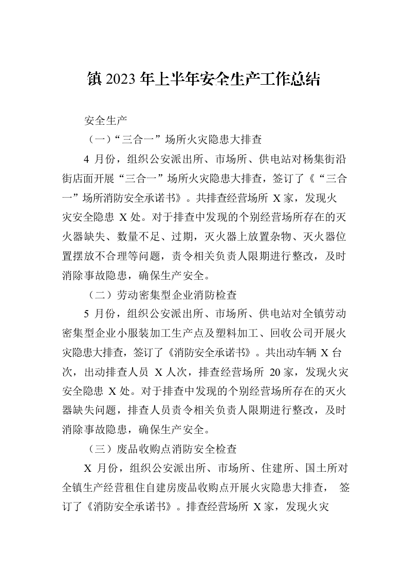 / 镇2023年上半年安全生产工作总结(20230710)