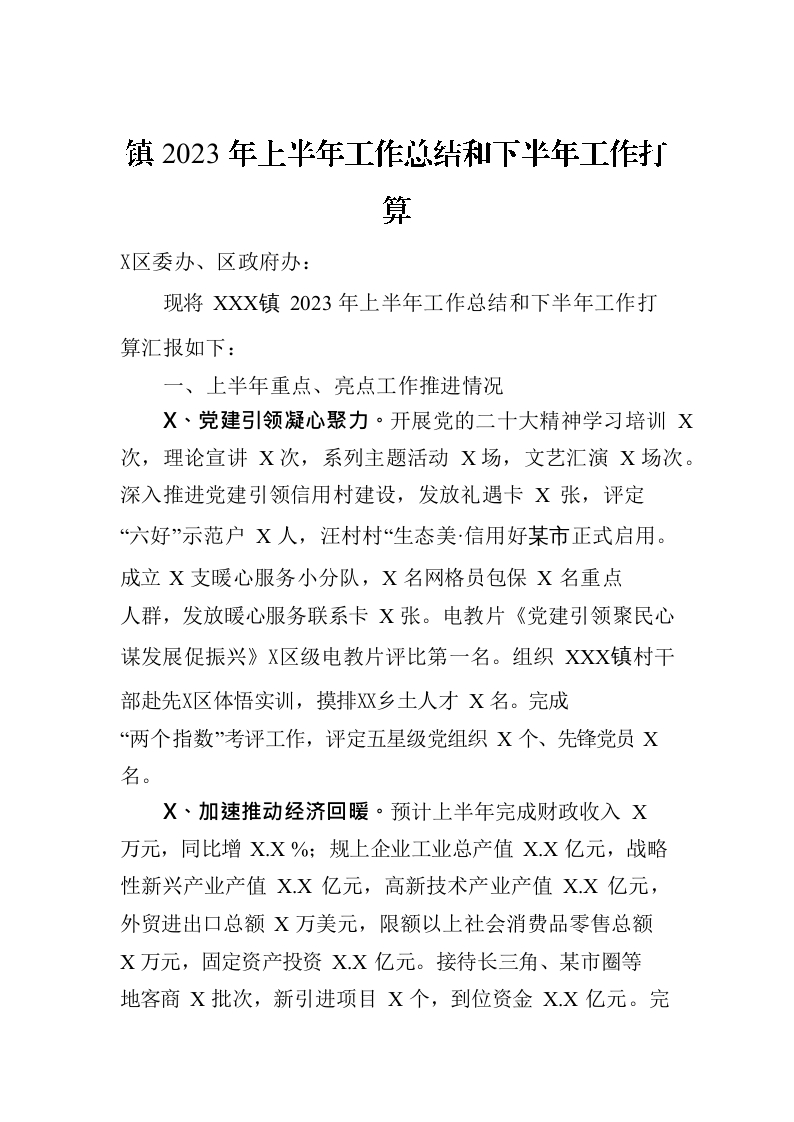 / 镇2023年上半年工作总结和下半年工作打算(20230627)