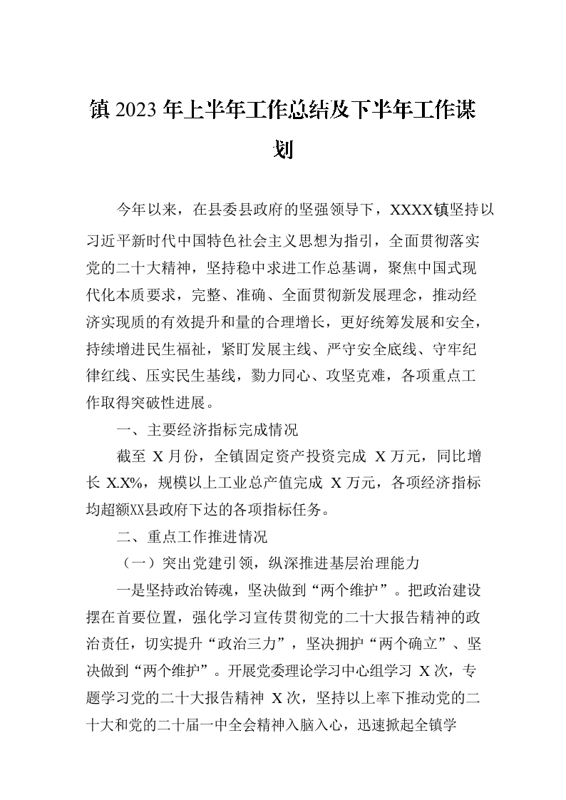 / 镇2023年上半年工作总结及下半年工作谋划(20230706)