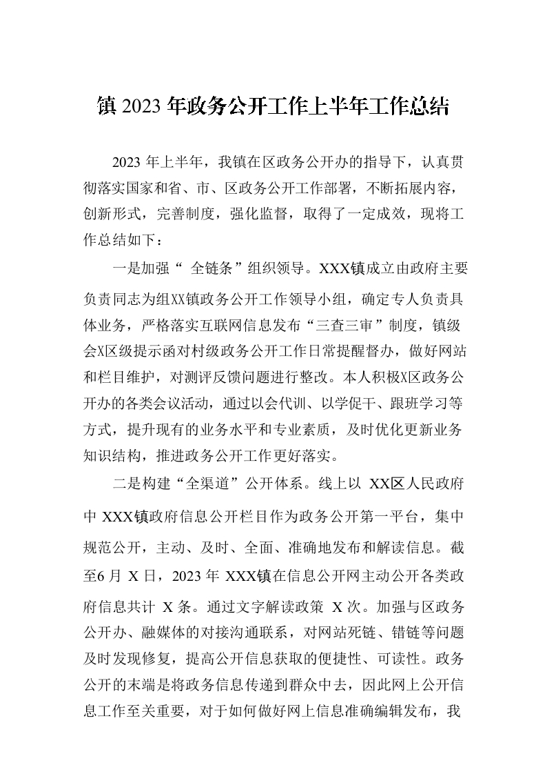 / 镇2023年政务公开工作上半年工作总结(20230703)