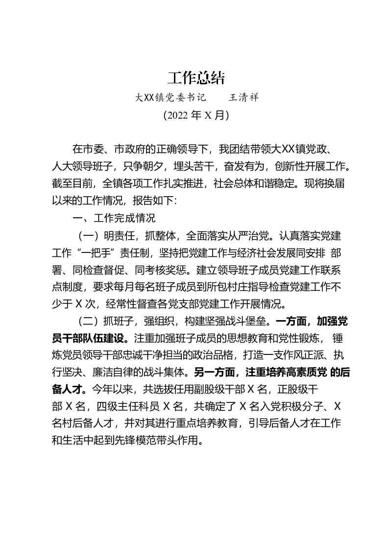 / 镇党委书记工作总结(202206)