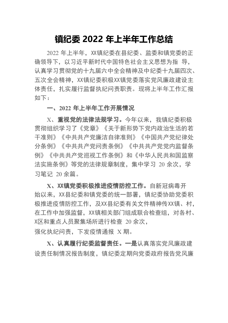 / 镇纪委2022年上半年工作总结