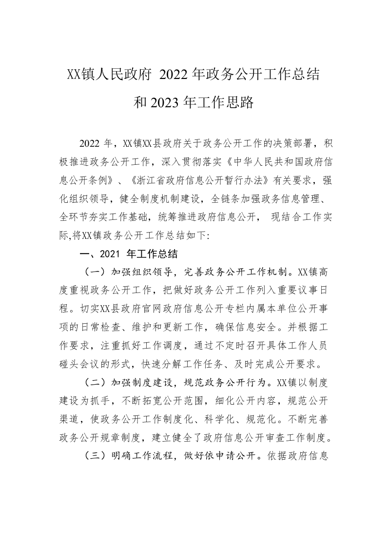 / 镇人民政府2022年政务公开工作总结和2023年工作思路(20221221)
