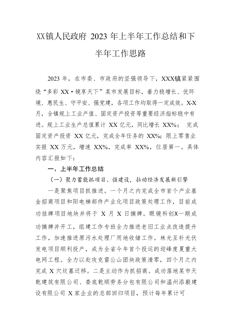 / 镇人民政府2023年上半年工作总结和下半年工作思路(20230627)