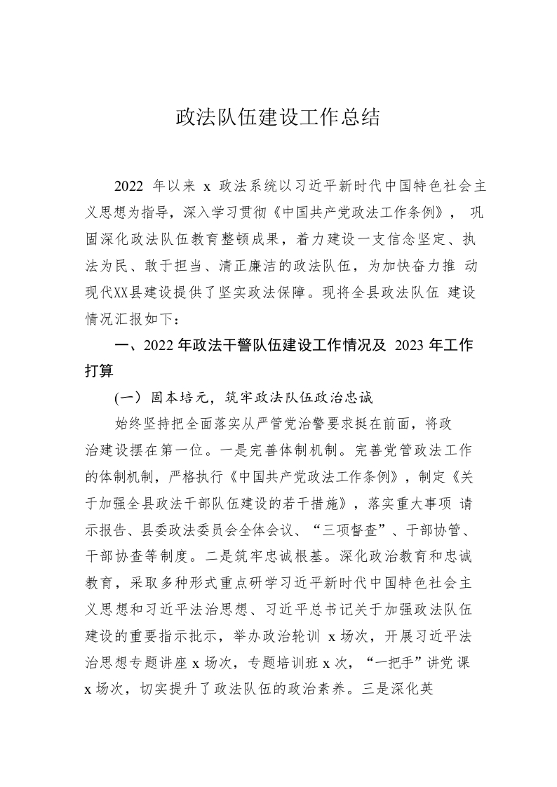/ 政法队伍建设工作总结