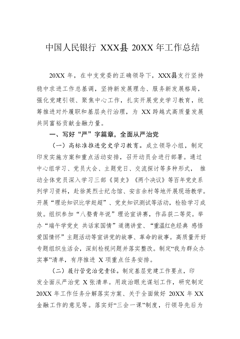 / 中国人民银行XX县20XX年工作总结