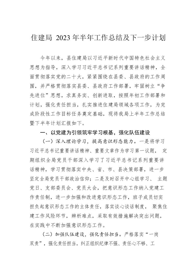 / 住建局2023年半年工作总结及下一步计划(20230627)