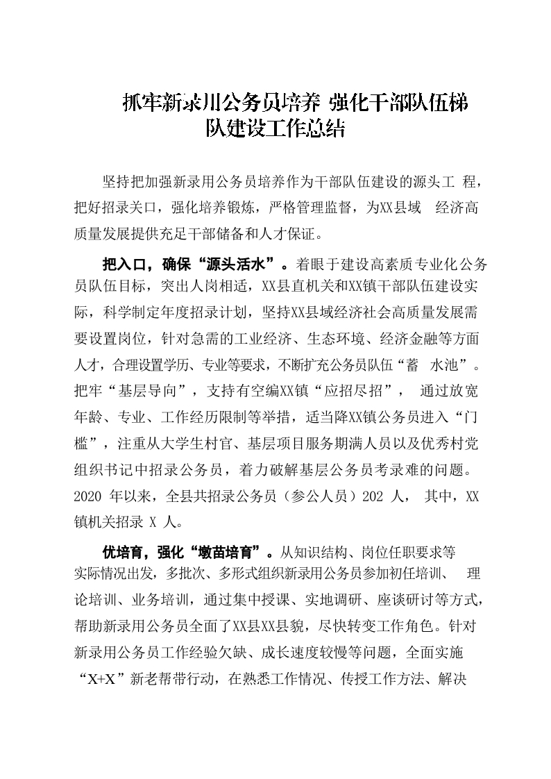 / 抓牢新录用公务员培养 强化干部队伍梯队建设工作总结