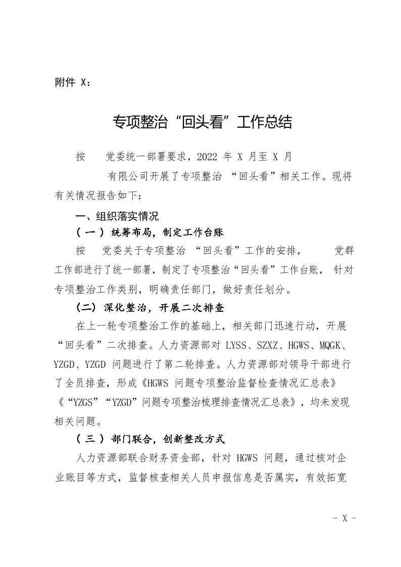 / 专项整治“回头看”工作总结